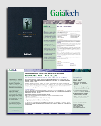 Currently engaged to revise and update the company's 2004-2005 integrated communications plan, Clovis has forged a valuable, long-term relationship with GaiaTech and its leadership team. Current initiatives include public relations planning and e-marketing initiatives to reach new markets for the company in post-close engineering services and real estate and facilities environmental management. |